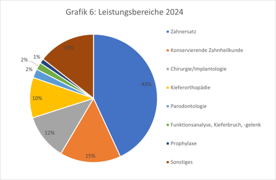 Unter den angefragten zahnmedizinischen Leistungsbereichen ist mit weitem Vorsprung der Zahnersatz der wichtigste, gefolgt von der Konservierenden Zahnheilkunde und der Chirurgie/Implantologie.